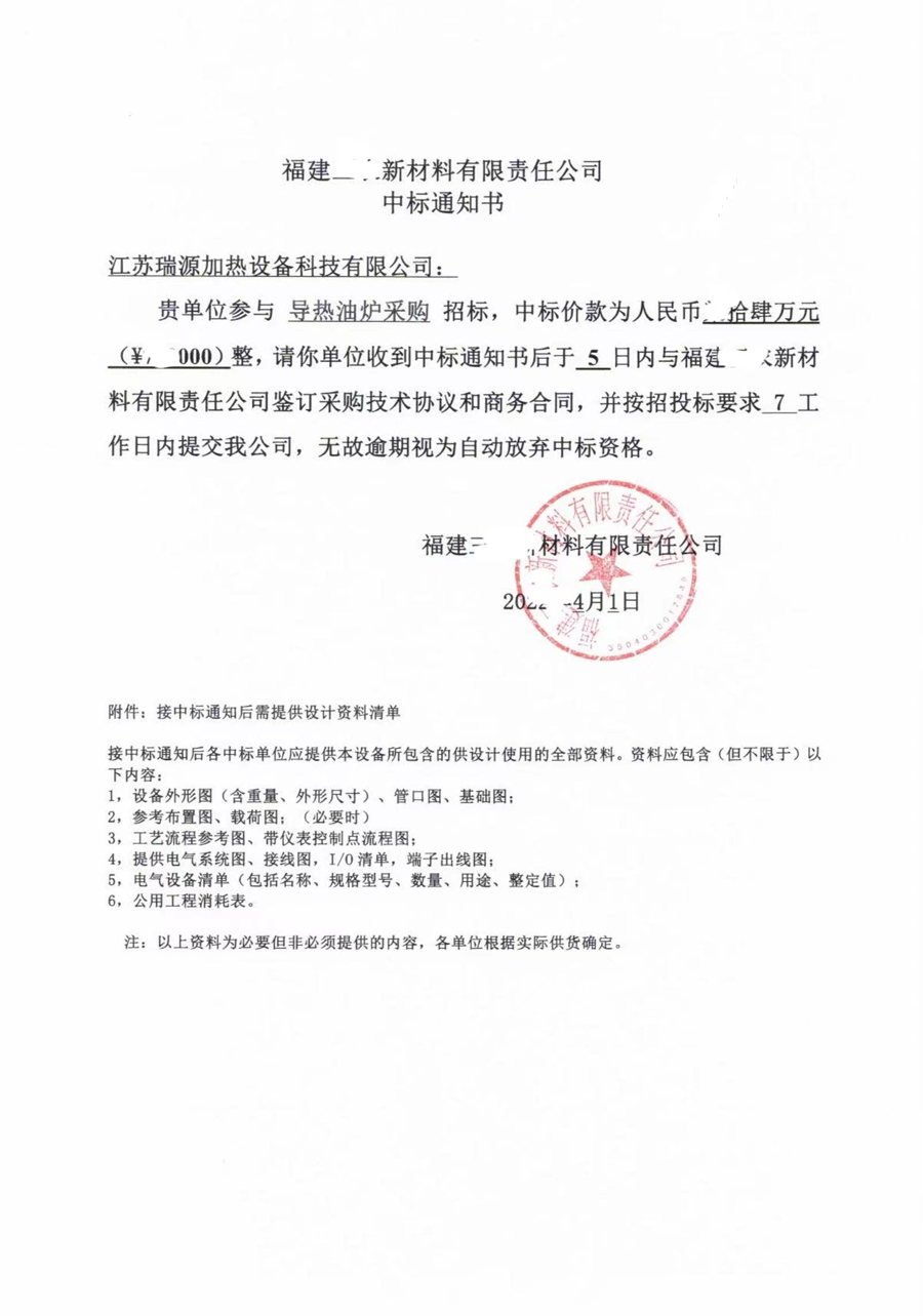 我公司在参与导热油炉需求采购竞标中,凭借科学的技术方案,扎实高质量的工作作风,优良的运作团队和完整的企业资质顺利中标。